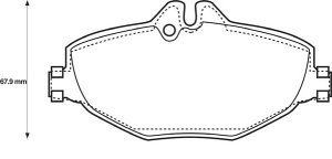 Prednje zavorne obloge S70-0007 - Fiat. Zavorne ploščice pretvorijo kinetično energijo s pomočjo trenja dveh ploščic in vrtečega diska. Ponašajo se z visoko kvaliteto in zmogljivostjo ter zagotavljajo optimalno ustvarjanje trenja in toplote, ki omogoči vozilu da se ustavi oziroma se njegova hitrost zmanjša. Lastnosti izdelka: Kraj vgradnje sprednja os, Debelina 16,3 mm, Dolzina 115 mm, Sirina 54,7 mm, ni predpripravljen za opozorilnik obrabe, Zavorni sistem Bendix.