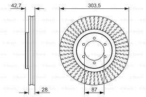 Prednji zavorni diski BS0986479694 - Hyundai Terracan. Letnik: 01-. Lastnosti: Premer 303,5 mm, Debelina zavornega diska 28 mm, okrogla luknja 108 mm, Vrsta ploscnih (kolutnih) zavor prezracevan, Stevilo lukenj 6.