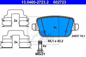 Zadnje zavorne obloge 13.0460-2723.2 - Ford, Land Rover, Volvo. Zavorne ploščice pretvorijo kinetično energijo s pomočjo trenja dveh ploščic in vrtečega diska. Ponašajo se z visoko kvaliteto in zmogljivostjo ter zagotavljajo optimalno ustvarjanje trenja in toplote, ki omogoči vozilu da se ustavi oziroma se njegova hitrost zmanjša. Lastnosti izdelka: Sirina 95,1 mm, Visina 43,2 mm, Debelina 16,1 mm, ni predpripravljen za opozorilnik obrabe, brez opozorilnega kontakta obrabe, s priborom, s vijaki za sedlo kolutne zavore, stevila vijakov 4, Zavorni sistem Lucas / TRW.