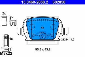 Zadnje zavorne obloge 13.0460-2858.2 - Opel Combo, Corsa, Tigra. Zavorne ploščice pretvorijo kinetično energijo s pomočjo trenja dveh ploščic in vrtečega diska. Ponašajo se z visoko kvaliteto in zmogljivostjo ter zagotavljajo optimalno ustvarjanje trenja in toplote, ki omogoči vozilu da se ustavi oziroma se njegova hitrost zmanjša. Lastnosti izdelka: Sirina 95,6 mm, Visina 43,8 mm, Debelina 14 mm, z opozorilnim zvokom obrabe, s vijaki za sedlo kolutne zavore, stevila vijakov 4, Zavorni sistem Lucas / TRW.