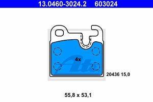 Zadnje zavorne obloge 13.0460-3024.2 - BMW Serija 5, 6. Zavorne ploščice pretvorijo kinetično energijo s pomočjo trenja dveh ploščic in vrtečega diska. Ponašajo se z visoko kvaliteto in zmogljivostjo ter zagotavljajo optimalno ustvarjanje trenja in toplote, ki omogoči vozilu da se ustavi oziroma se njegova hitrost zmanjša. Lastnosti izdelka: Sirina 55,8 mm, Visina 53,1 mm, Debelina 15 mm, pripravljen za opozorilnik obrabe, brez opozorilnega kontakta obrabe, Zavorni sistem ATE. Cena velja za garnituro.