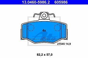Zadnje zavorne obloge 13.0460-5986.2 - Nissan. Zavorne ploščice pretvorijo kinetično energijo s pomočjo trenja dveh ploščic in vrtečega diska. Ponašajo se z visoko kvaliteto in zmogljivostjo ter zagotavljajo optimalno ustvarjanje trenja in toplote, ki omogoči vozilu da se ustavi oziroma se njegova hitrost zmanjša. Lastnosti izdelka: Sirina 82,2 mm, Visina 57 mm, Debelina 14,9 mm, brez opozorilnega kontakta obrabe, Zavorni sistem Lucas / TRW, Kontrolna oznaka E9 90R-01231/1294. Cena velja za garnituro.