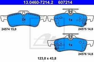 Zadnje zavorne obloge 13.0460-7214.2 - Toyota Yaris 06-09. Zavorne ploščice pretvorijo kinetično energijo s pomočjo trenja dveh ploščic in vrtečega diska. Ponašajo se z visoko kvaliteto in zmogljivostjo ter zagotavljajo optimalno ustvarjanje trenja in toplote, ki omogoči vozilu da se ustavi oziroma se njegova hitrost zmanjša. Lastnosti izdelka: Sirina 123 mm, Visina 43,8 mm, Debelina 15 mm, z opozorilnim zvokom obrabe, Zavorni sistem ATE, Kontrolna oznaka E1 90R-011034/864.