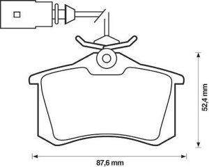 Zadnje zavorne obloge S70-1057 - Seat. Kraj vgradnje Zadnja prema, Kvaliteta 162, Debelina 17.2 mm, Dolzina 87.6 mm, Visina 52.4 mm, vkl. opozorilni kontakt obrabe, s priborom, Zavorni sistem TRW.