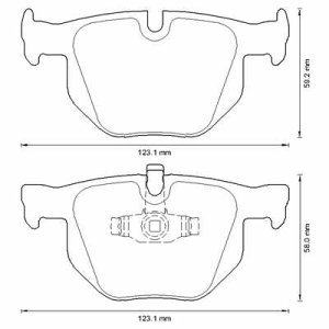 Zadnje zavorne obloge S70-1174 - BMW. Kraj vgradnje Zadnja prema, Sirina 122 mm, Visina 59,2 mm, Debelina 17 mm, Zavorni sistem ATE, pripravljen za opozorilnik obrabe, z anti deformacijsko plocevino.