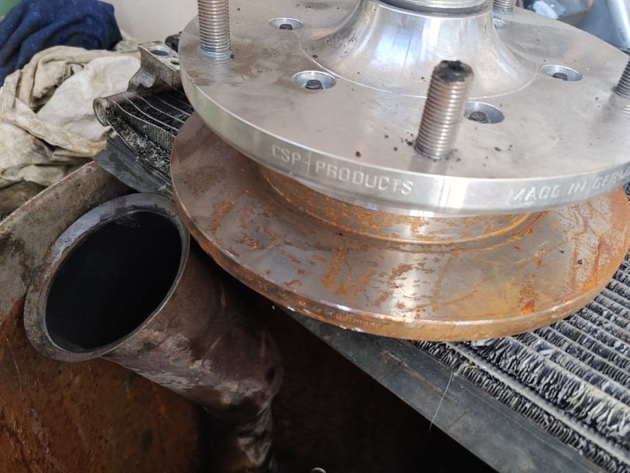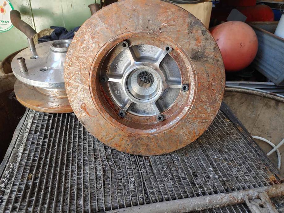Prodam zavorna koluta z distančniki, kolesnimi vijaki in ležiščem ležajev. Ni mi znano za katero vozilo je namenjeno, oznake odtisnjene na robu: