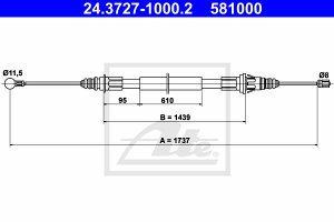 Žica ročne zavore 24.3727-1000.2 - Opel Movano. Letnik: 99-03. Dolzina 1737 mm.