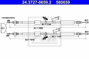 Žica ročne zavore Ford C-Max. Letnik: 07-10. Lastnosti: Dolzina 1816 mm, Dolzina 2 1860 mm, Kraj vgradnje zadaj