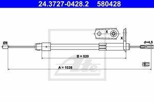 Žica ročne zavore Mercedes-Benz Razred A 97-04, zadaj, levo, 1038 mm
