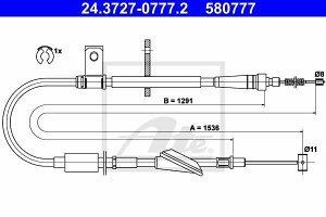 Žica ročne zavore Opel Agila. Letnik: 00-07. Lastnosti: 1536 mm, Kraj vgradnje levo