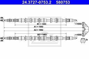 Žica ročne zavore Opel Astra. Letnik: 98-04. Lastnosti: D1/D2 1592 mm, Kraj vgradnje zadaj.