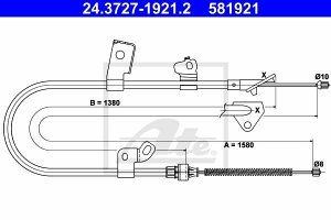 Žica ročne zavore Toyota Yaris. Letnik: 99-05. Bobnasta zavora, Kraj vgradnje zadaj, Kraj vgradnje levo, dolžina: 1582 mm.