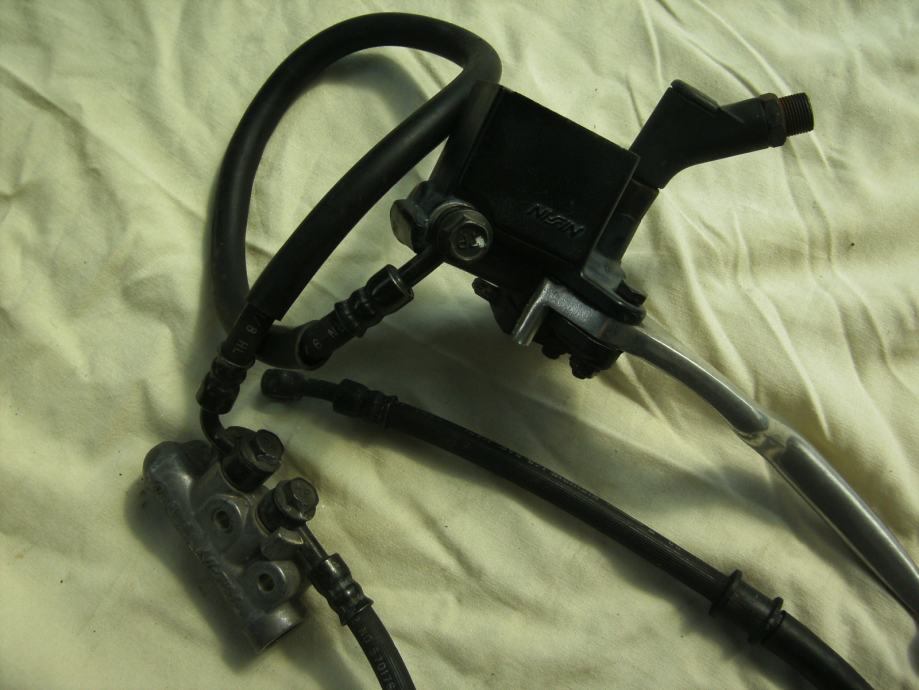 Leva ročka Nisin z zavornim cilindrom Nisin in hidravlične cevi Suzuki Burgman, verjetno še za kakšen drug motor-vse kar vidno na sliki v kpl.,pokličite 051667154