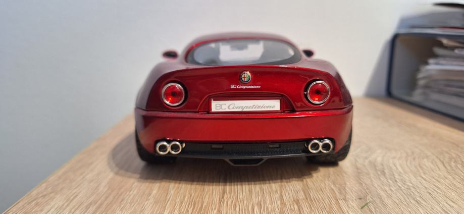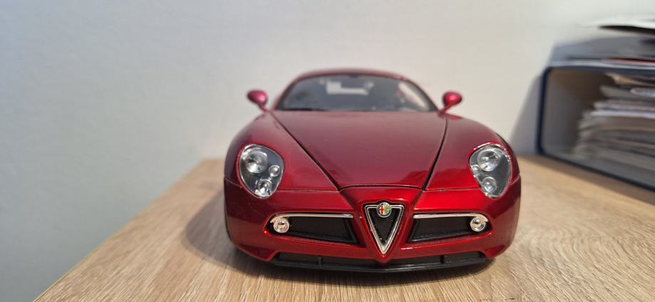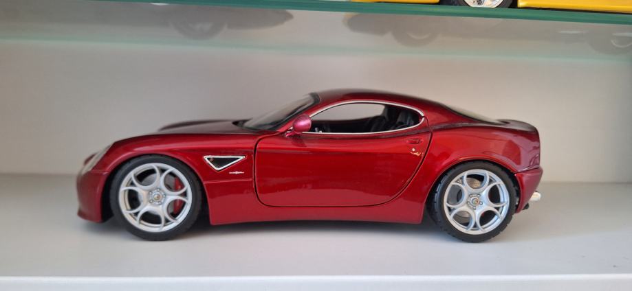 1:18 Alfa Romeo 8C competizione - Burago. Model prestavljen iz škatle v vitrino. Zbirateljski model, nikoli uporabljen kot igrača.
