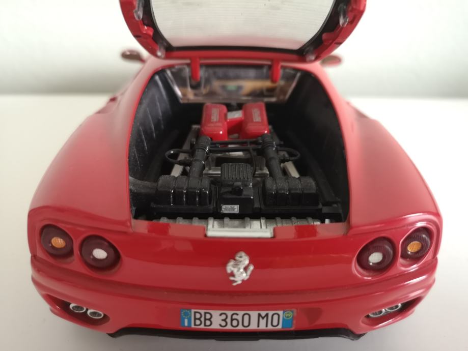 Prodam model avtomobila Ferrari 360 Modena (1999) proizvajalca Bburago v merilu 1:18. Model v stanju kot na fotografijah, prevzem mogoč v LJ, MB ali KR. Po pošti ne pošiljam, originalna embalaža ni na voljo.