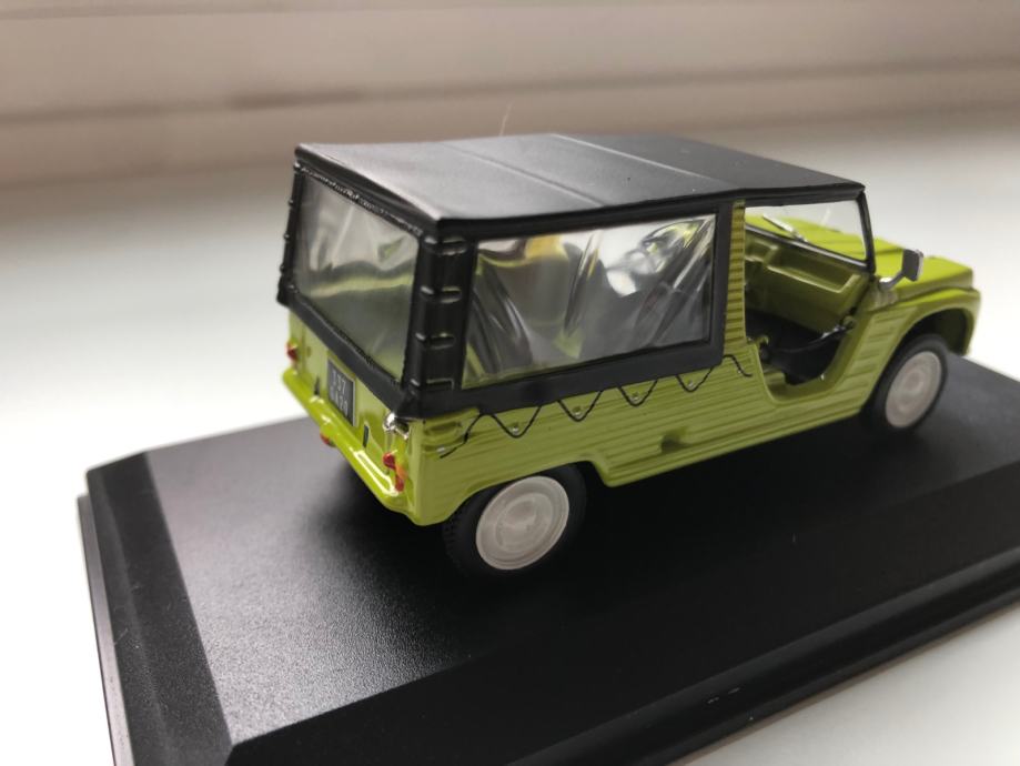 Model avtomobila je starejši, ohranjen kot nov, v vitrini. Vitrina je na eni strani počena, razvidno iz fotografije.