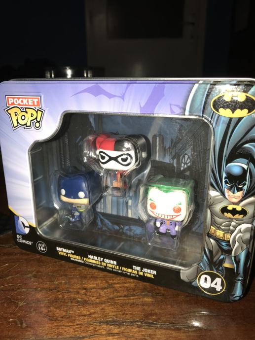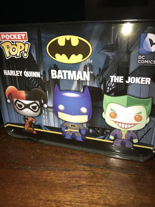 Batman,Harley Quinn,The Joker.Škatla je pločevinasta,neodprta.