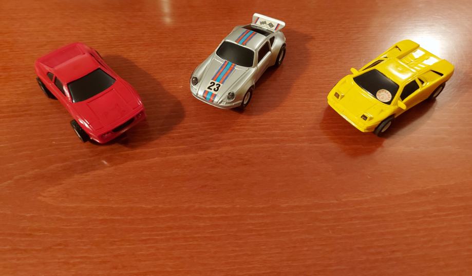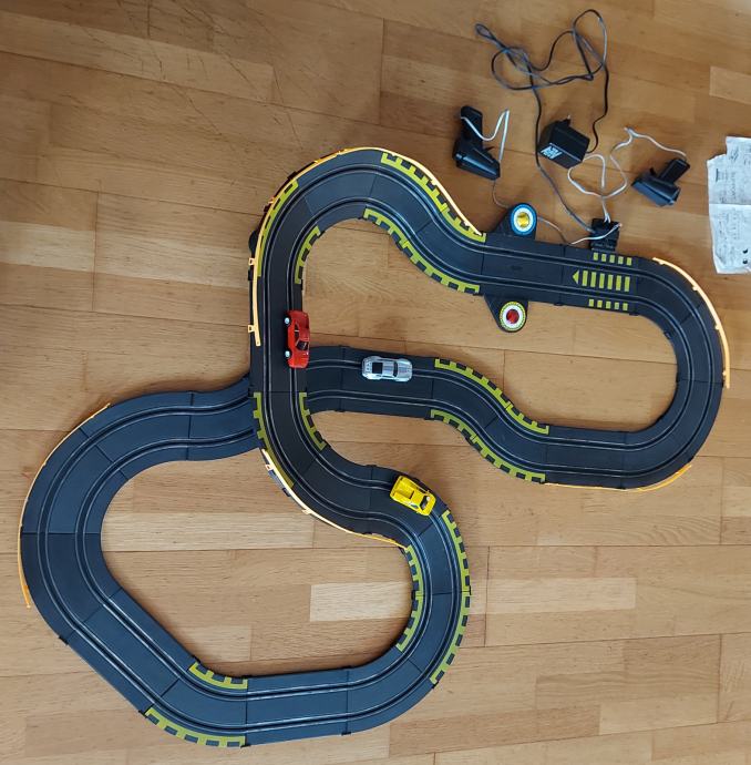 Prodam odlično ohranjeno,delujočo avtocesto. Nič ne manjka. 2 avtomobilčka: rdeč in rumen sta se dobila v kompletu in žal ne speljeta kljub temu, da je stik in motorčka delujeta,ter se kolesa vrtijo.Srebrni Porsche pa je bil naknadno kupljen nov in deluje kot nov! Teče gladko! Avtomobilčki so drugače odlično ohranjeni.