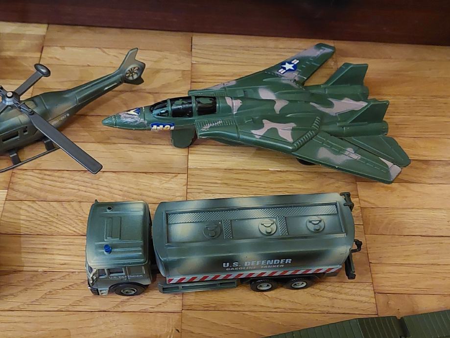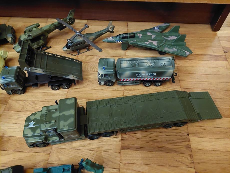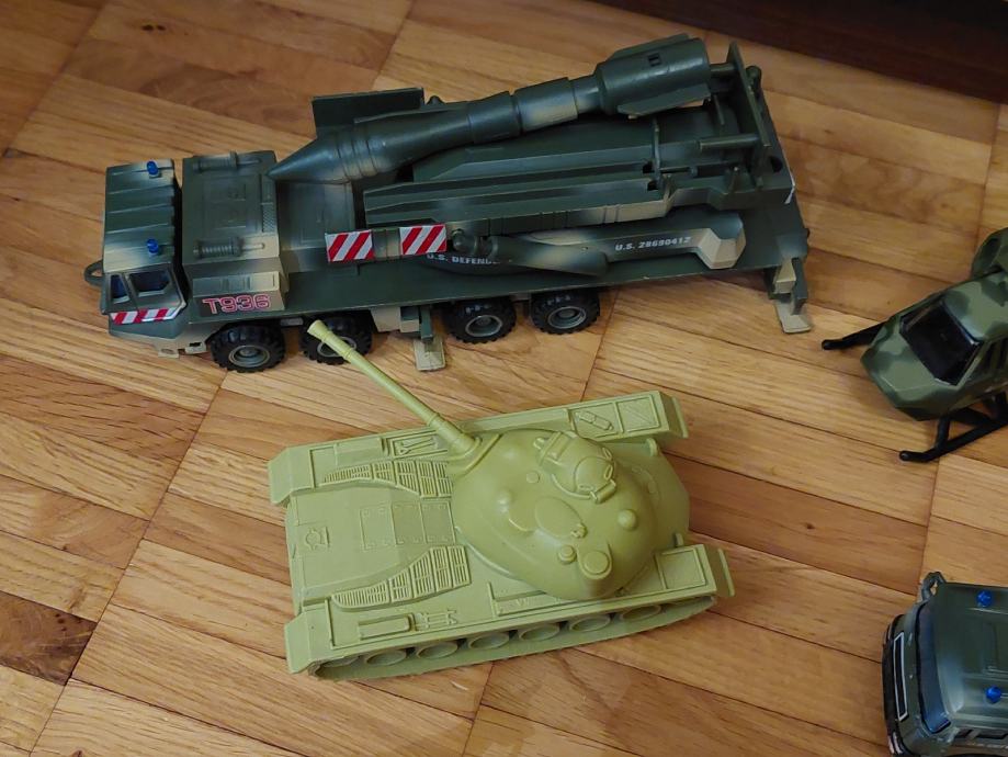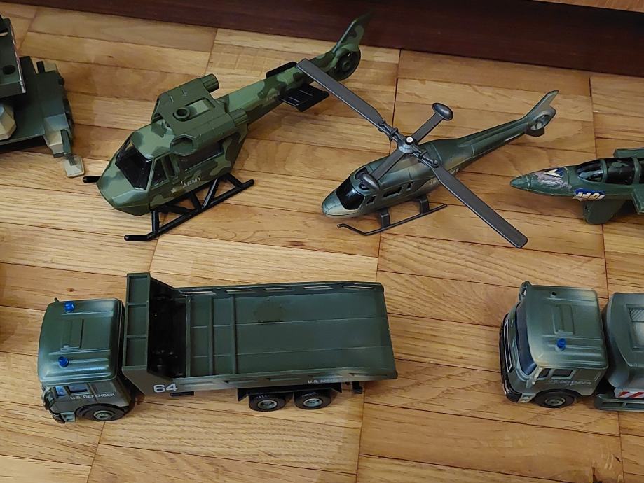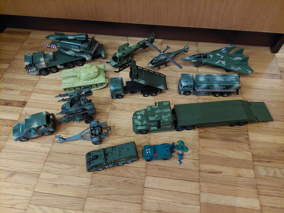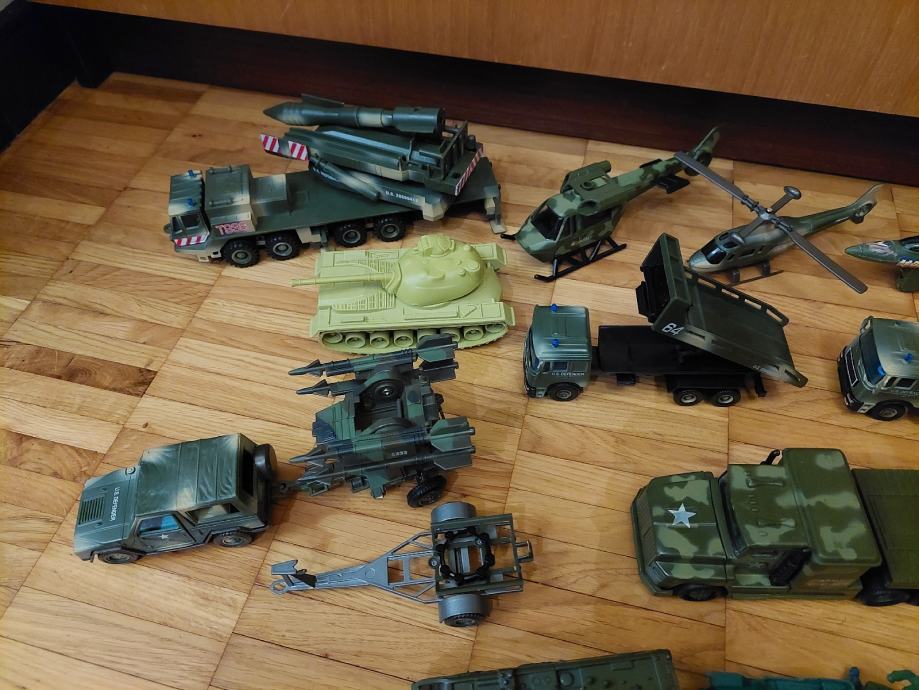 Igrače ,,vojaški avti,,avijoni, tank,puška...