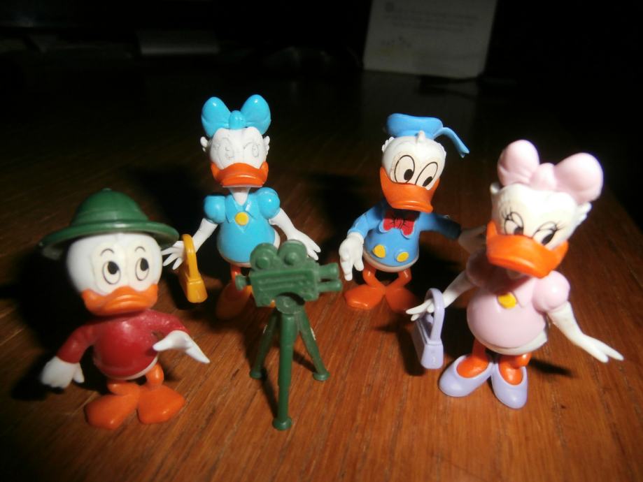 Prodam kinder figurico Donald Duck nephew with camera 1989 za 7 €, Donald duck light blue 1988 za 4 €, Daisy duck with handbag 1988 2x po 4 €.