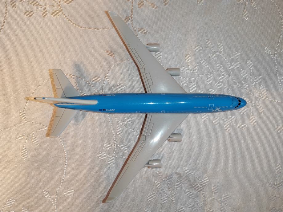 Prodam kovinski model letala Boeing 747. Dolžina je okoli 15 cm, razpon kril je okoli 14 cm.