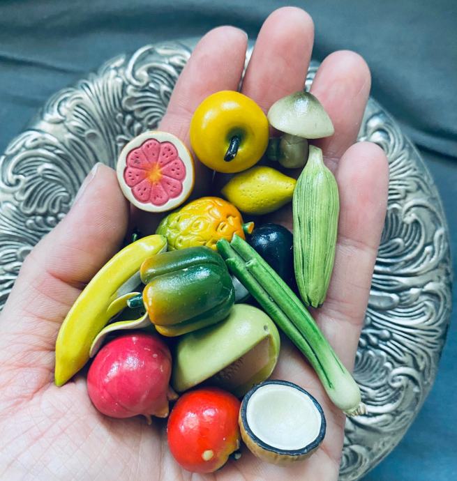Zraven podarim še dve bolj poškodovani miniaturici (korenček in še en ananas).
