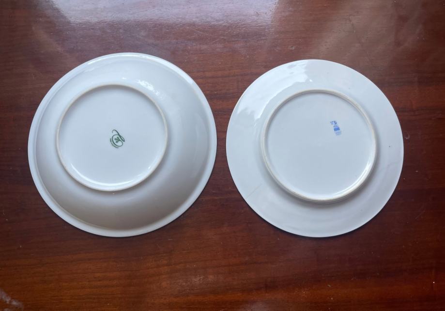 Površinski razpoki (črta) v glazuri sta vidni pri obeh (le vizualni učinek, krožnika sta čvrsta in v celoti uporabna).