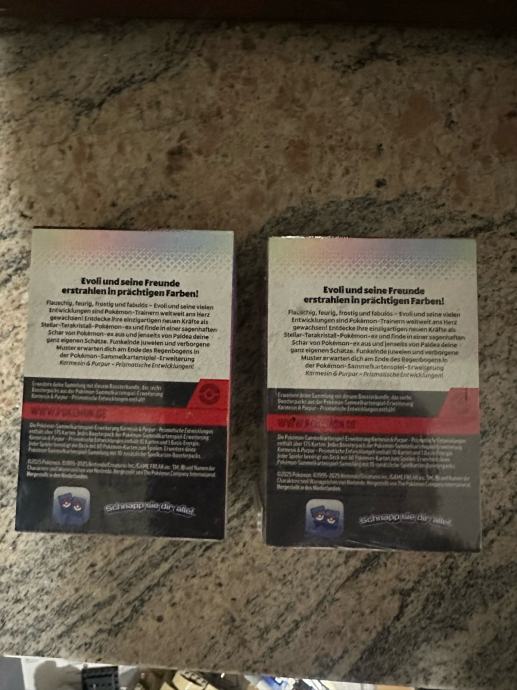 Prodam dva nova, originalno zapakirana prismatic boster bundle (vsak vsebuje 6 paketov). Neda se jih veče kupiti cena vsakega je 70€, če pa vzamete oba pa spustim ceno na 130€. Prevzem v okolici beltinec ali pošljem po pošti na stroške kupca. Sta pa v nemškem jeziku.