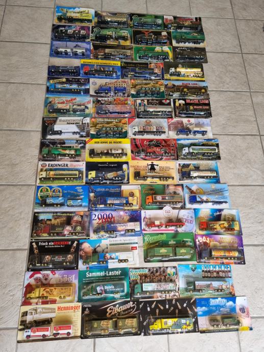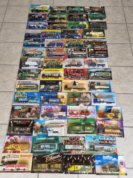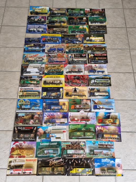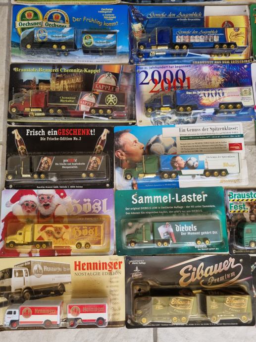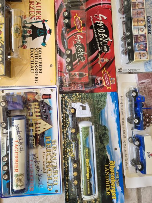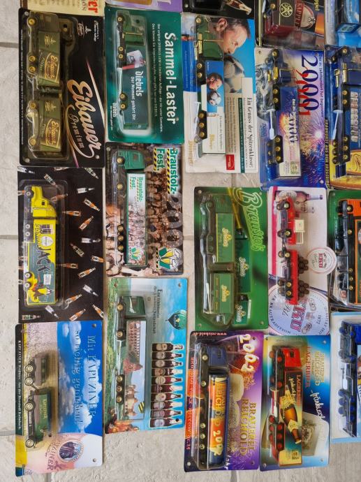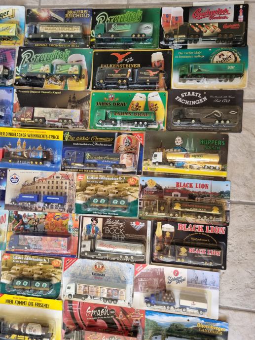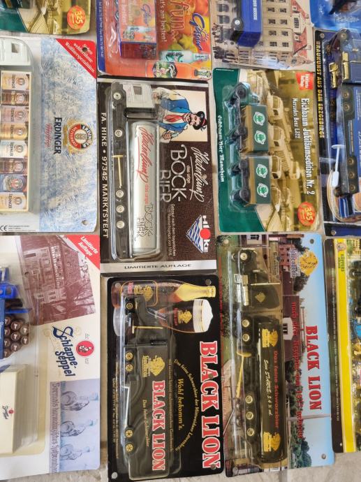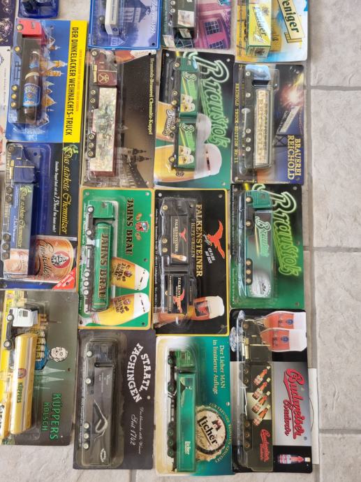 Velika zbirka kamiončkov nemških pivovarn. Cena 2 EUR/kos velja za nakup 50 kosov ali več. Vsi modeli so še originalno zapakirani. Na slikah je le del zbirke.