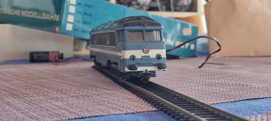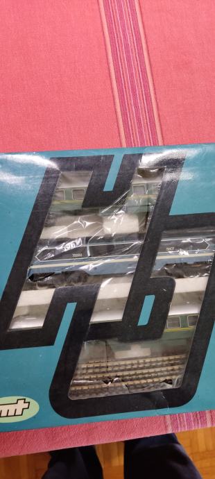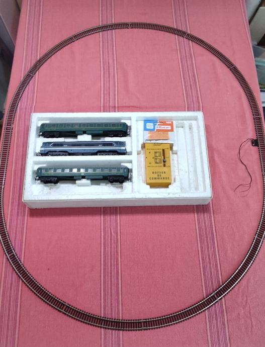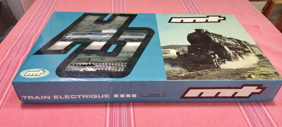 Jugoslavija, stara kakšnih 50 let. Kompletna, rezervni spoji za tirnice, deluje, celofan na škatli je potrgan.