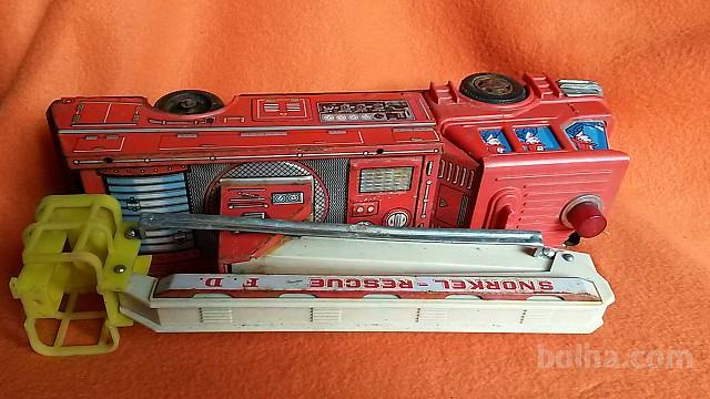 Stara igrača TIN plate / plehnato gasilsko vozilo MADE IN JAPAN na BATERIJE.