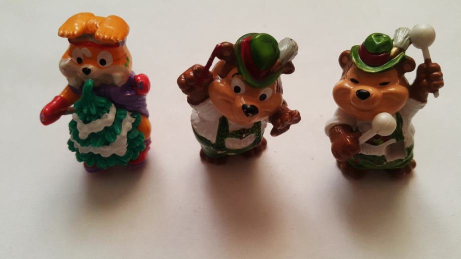Prodam nekaj svojih neznanih otroških figuric malih medvedkov. Malce pospravljam klet in sem našel tole kar je na slikah v eni manjši škatlici. Nimam pojma ali je to popoln set teh medvedkov ali manjkajo še drugi (ali ekstra deli). Rad bi pa prodal vse v kompletu, ker bi se le rad vseh treh naenkrat znebil. Seveda je pa tudi možen nakup posamične figurice. V tem primeru je cena/kos okoli 2 €. Nasplošno bi bil pa vesel kakršnekoli informacije za šifro/kodo za posamezno figurico (oz. kako se ji reče) - da bi potem lažje nastavil končno (bolje realno) ceno za komplet in za samo vsako figurico. Skratka... vse skupaj že čaka na svojega novega lastnika (otroka) oz. zbiratelja.