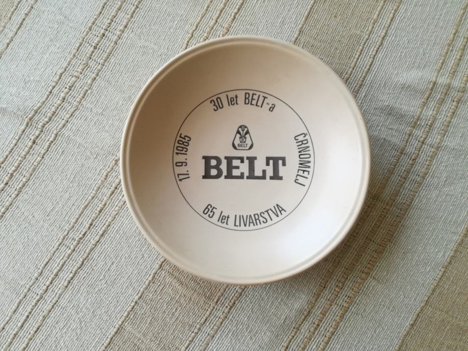 Starejši spominski krožnik iz 1985, Belt Črnomelj 30 let Belta, 65 let livarstva. Premer 20cm.