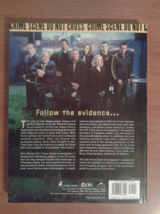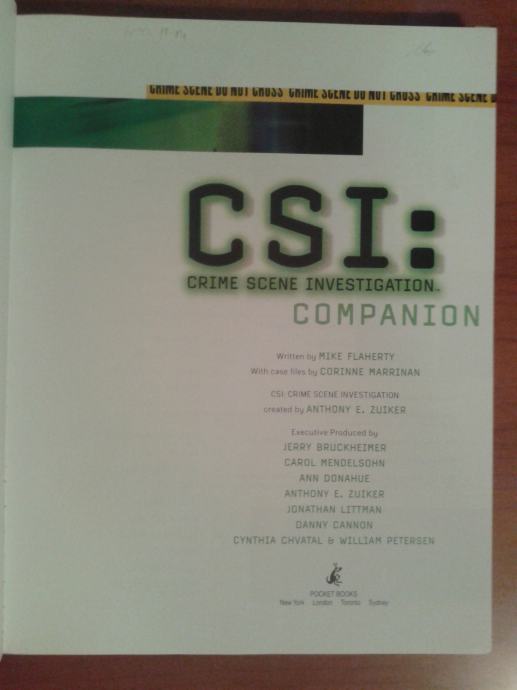 Prodam odlično ohranjeno knjigo kot nova CSI: CRIME SCENE INVESTIGATION COMPANION. Written by MIKE FLAHERTY, With case files by CORINNE MARRINAN. Knjiga predstavlja nastajanje televizijske serije,opisuje posamezne epizode prvih treh sezon, v knjigi so tudi fotografije,ki niso bile nikjer videne, dosjeji(case files), intervjuji z ustvarjalci serije( producent..), predstavljeni so posamezni igralci...