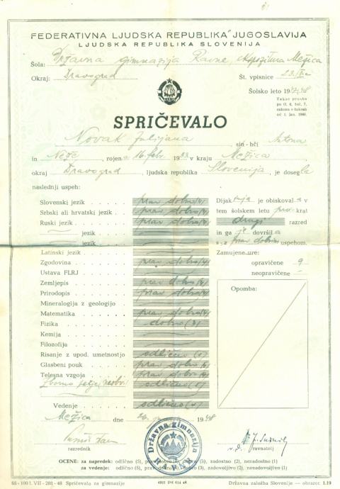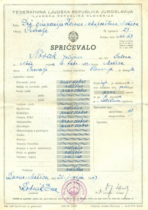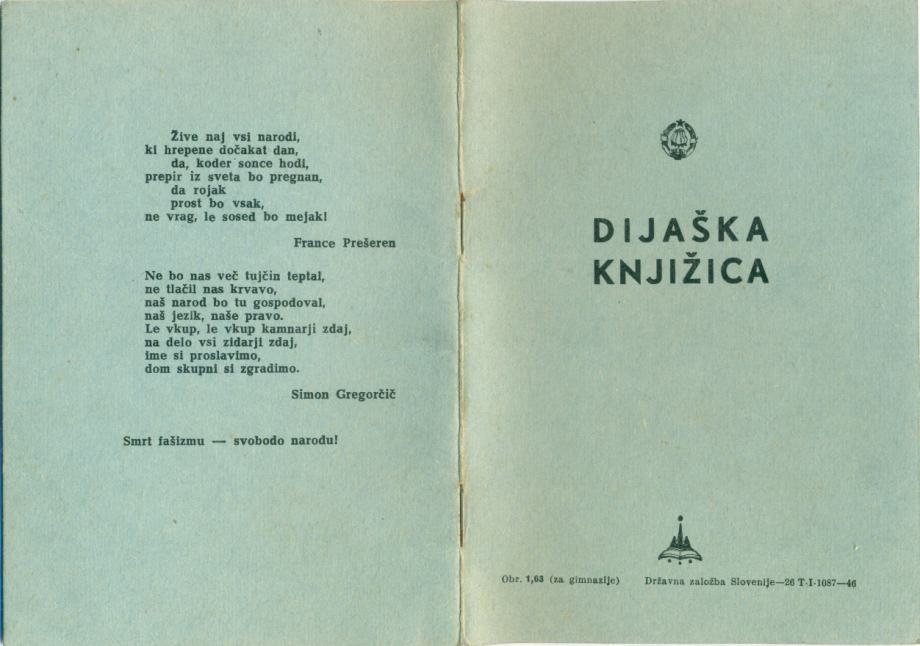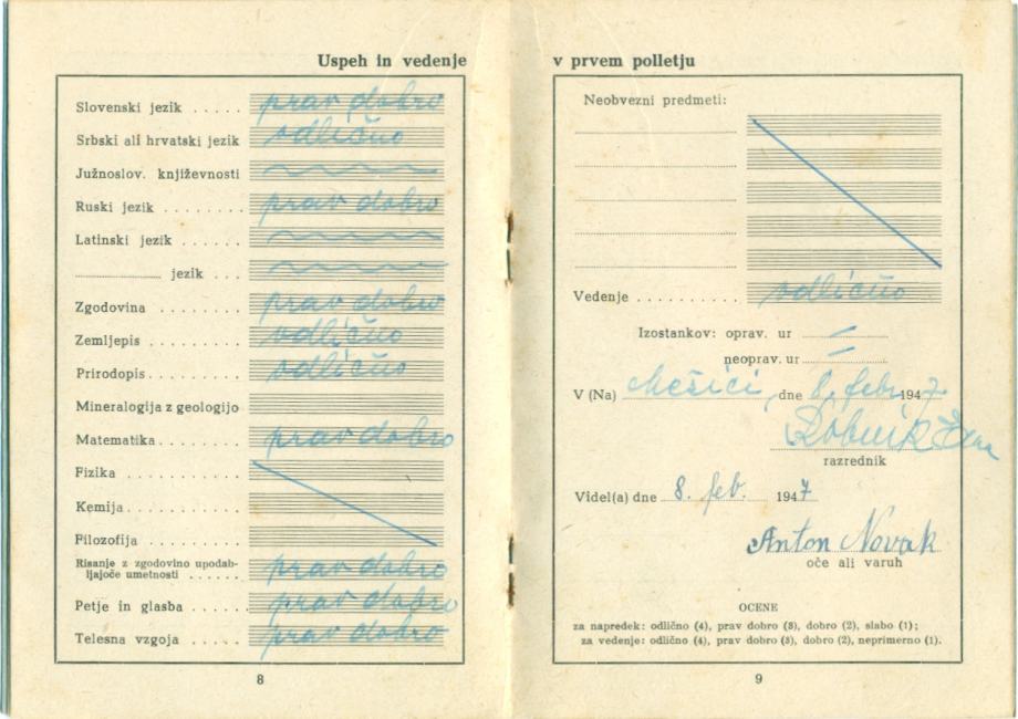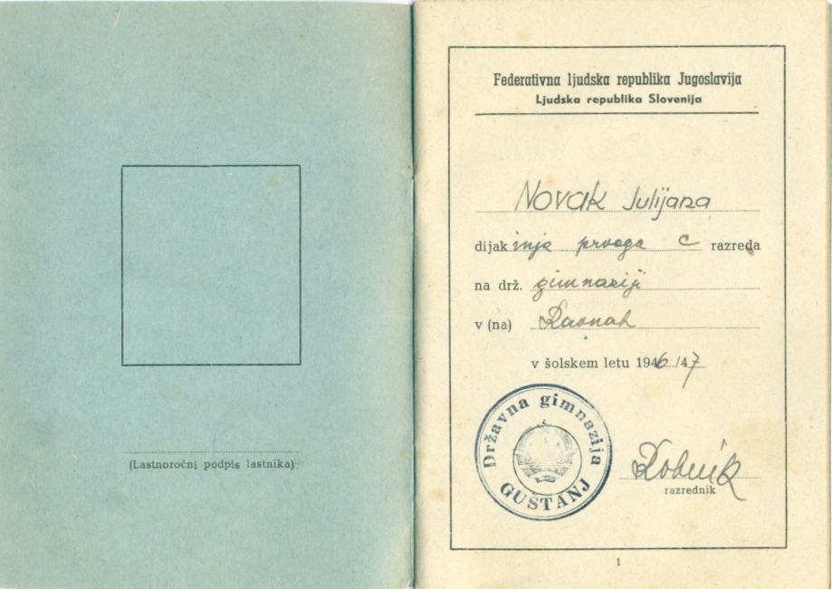 Dijaška knjižica, 1946-1947, Državna gimnazija Guštanj + 2x spričevalo