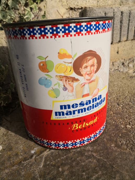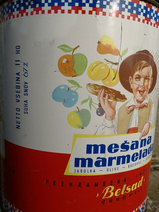 - stara škatla embalaža za marmelado Saturnus Yugoslavia,, mešana marmelada,jabolka slive breskve borovnice,, prehrambena industrija BELSAD Črnomelj, velikost ca 25 cm, - 39,99€,,
