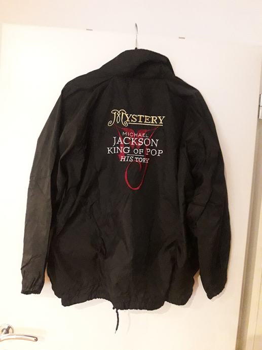 kot član organizacijske ekipe, sicer odpovedanega ljubljanskega koncerta michaela jacksona 1997 v ljubljani, prodam najboljšemu ponudniku unikatno črno dežno jakno (verjetno edina!) z njegove turneje World History Tour, ki jo je takrat dobil res samo najožji team.