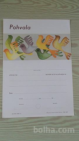 PRODAM LEPO OHRANJENO PRAZNO POHVALO ZA OSNOVNE ŠOLE.