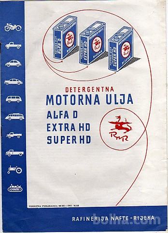 Reklama za olja je večjega formata in ima 8 strani s tremi tabelami in tremi fotografijami, srbohrvaščina.