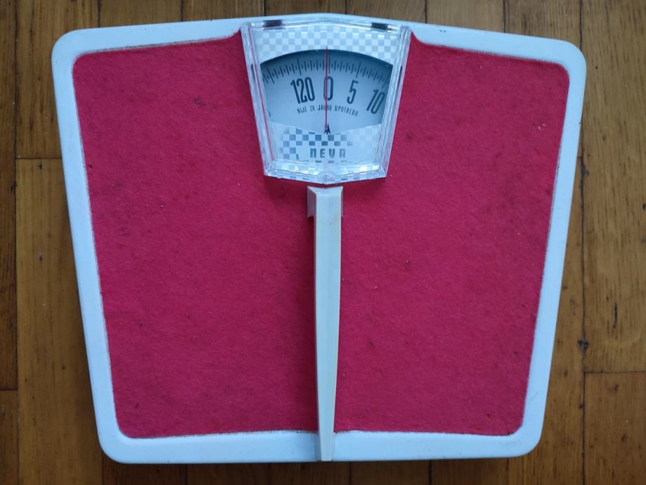 Prodam izredno lepo ohranjeno retro osebno tehtnico Neva v rdeči barvi (Libela Celje).