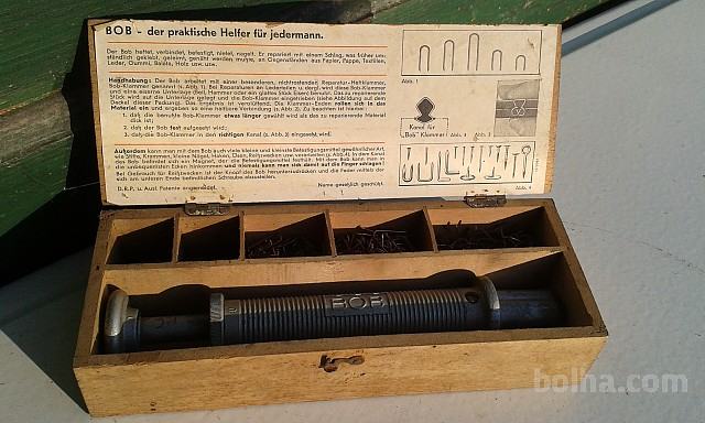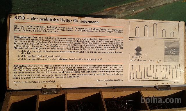 Prodam starinski spenjalec BOB v originalni leseni škatlici, s sponkami, originalno navodilo, spenjalec v brezhibnem 1A stanju!