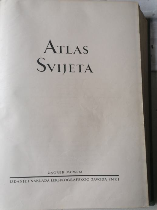 Na voljo je star črno bel ATLAS SVIJETA - hrvaška izdaja Zagreb.FRNJ 1961.