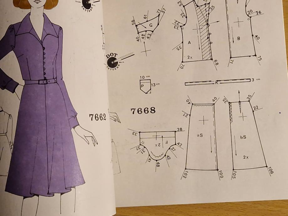 28 x 21 cm, cca 50-ak stranica, po ovim se skicama može danas krojiti i šivati retro odjeća..