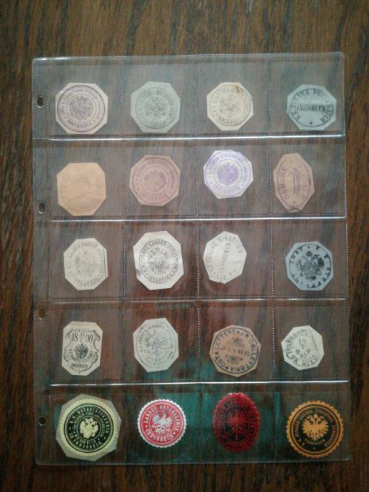 Prodam 800 kom starih različnih žigov na 40 listih in 120 kom raznih napisov na 17 listih iz Avstrije, Italije, Jugoslavije. Slikanih je samo nekaj listov za prikaz. Prodaja se v kompletu.
