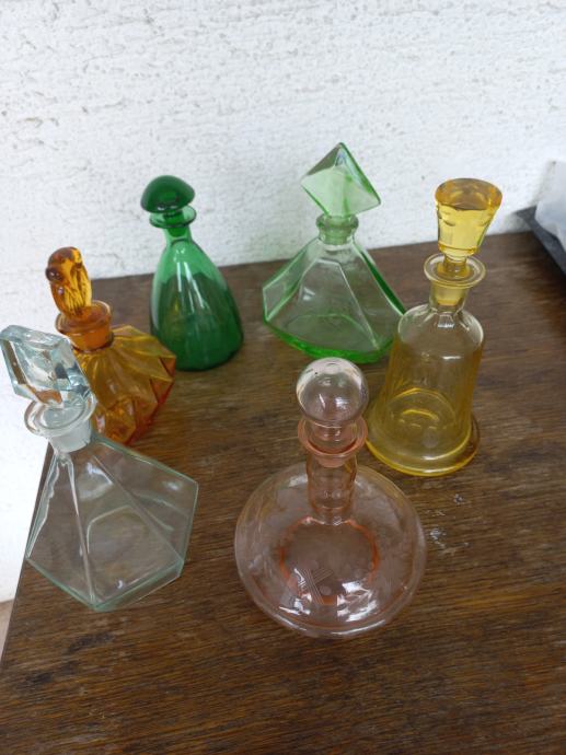 Steklene barvne steklenice za žgane pijače 6 kom, prodam v kompletu.
