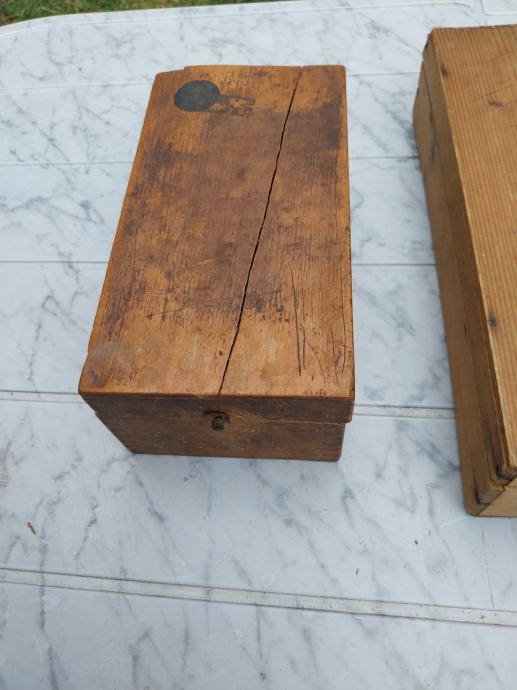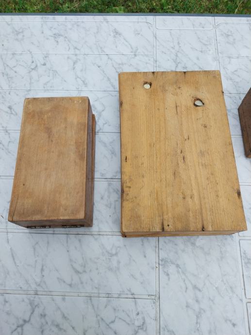 Prodajam stare vintage lesene škatle ter posodo za Jacobs kavo. Cena je za komplet.