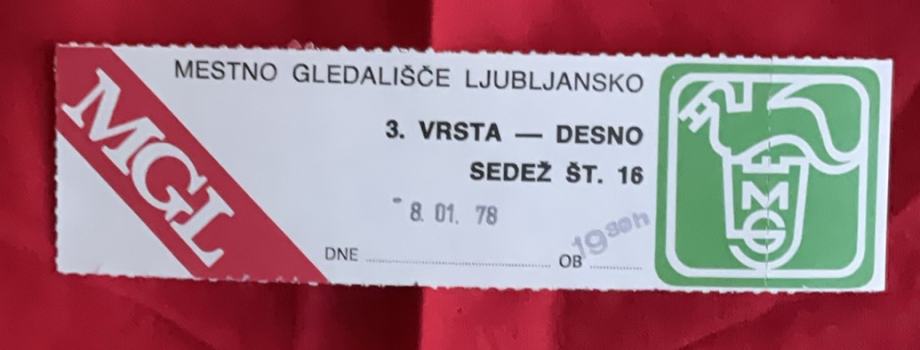 Vintage vstopnica za Mestno gledališče ljubljansko, MGL 1978