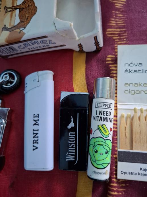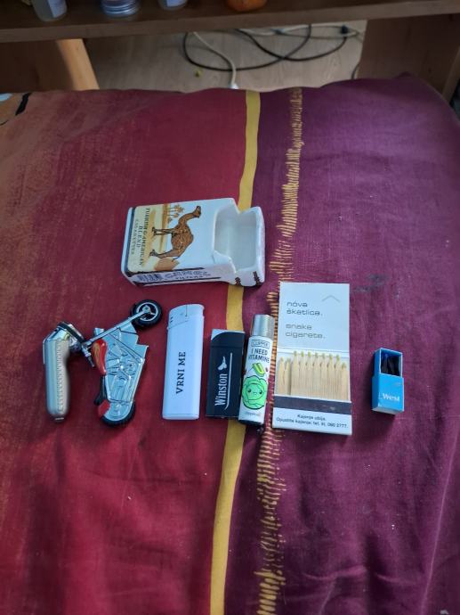 Vsi so posebni vžigalniki in en zelo poseben pepelnik,vse je izpravno,vsi se dajo polnit,če rabite kakšno vprašanje cifra 051 844 259 ime mi je Rok,prihajam iz Metropole MARIBOR, prodajam pa te posebne vžigalniki + Camel pepelnik za 40€.Imam jih že dobrih 15let,tud sentimentalnosti nekaj šteje a ne,pa je nisem računal zraven,zdaj dal sem na dražbo,da lahko bulo kdo viša ,začetna je 40€.Ime mi je Rok,sem iz Metropole MARIBOR, moja cifra 051 844 259 in kar vprašajte kar vas zanima,tele najmanjše šibice so res zelo zanimive,a ne? Lep pozdrav in upam,da se še slišimo.