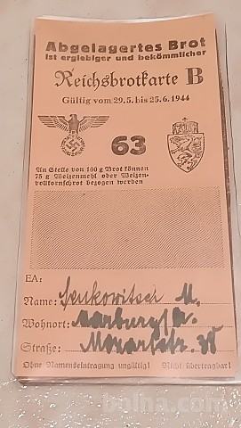 prodaja se star dokument - dovolilnica za kruh,kuponi z kruh ,100 gr kruha,,Abgelagertes Brot ist,,,Reichsbrotkarte B od 29.5 bis 25.6.1944,,2 svetovna vojna,,