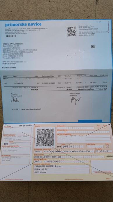 V zbirateljske namene kupim pretekle položnice časopisa Primorske Novice od marca 2025 dalje.